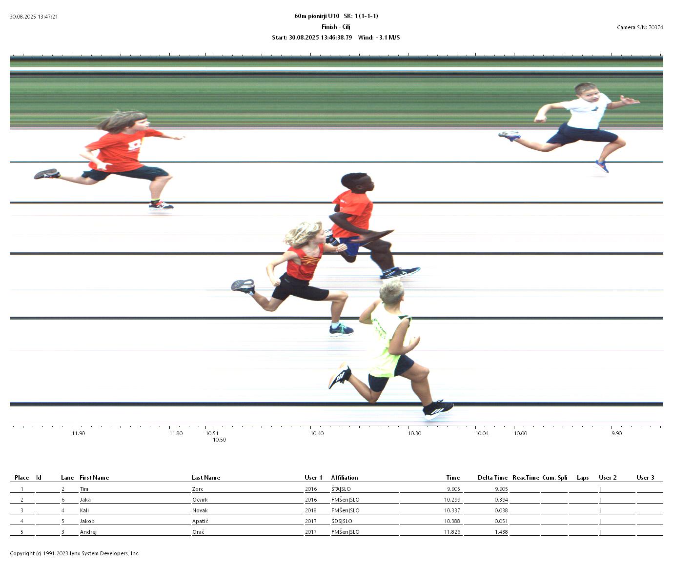 Rezultati - 60 m, pionirji U10, wind: +3,1   PhotoFinish