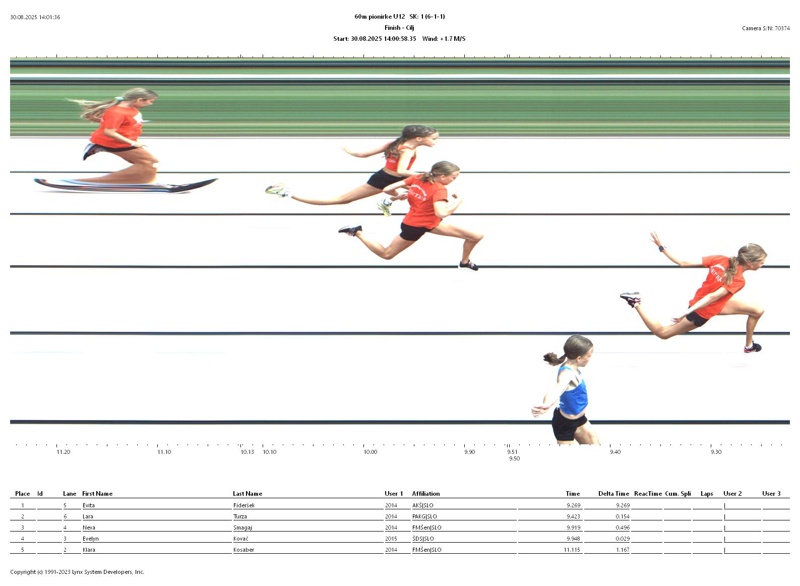 Skupina 2 - 60 m, pionirke U12, wind: +0,7