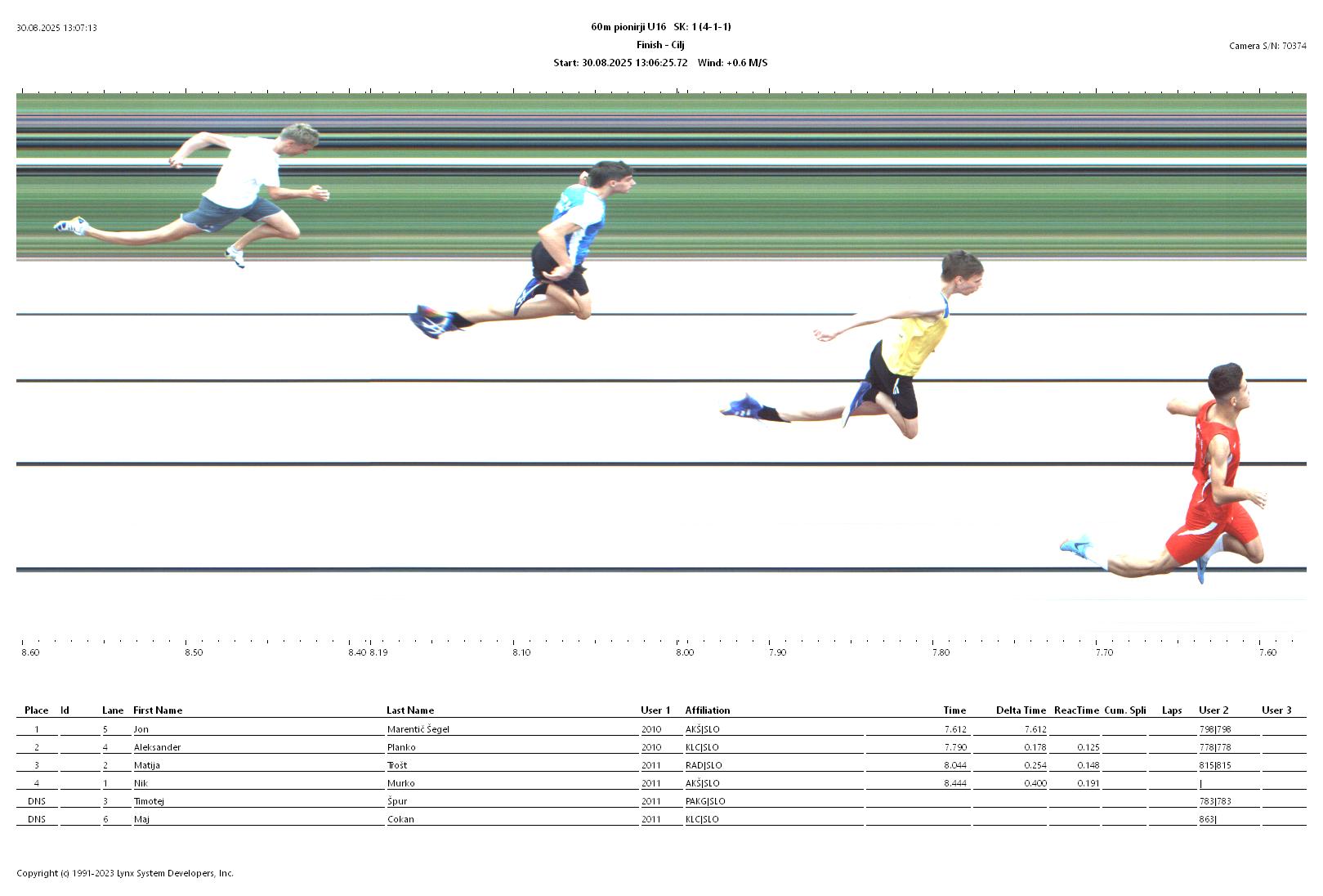Skupina 1 - 60 m, pionirji U16, wind: +0,6